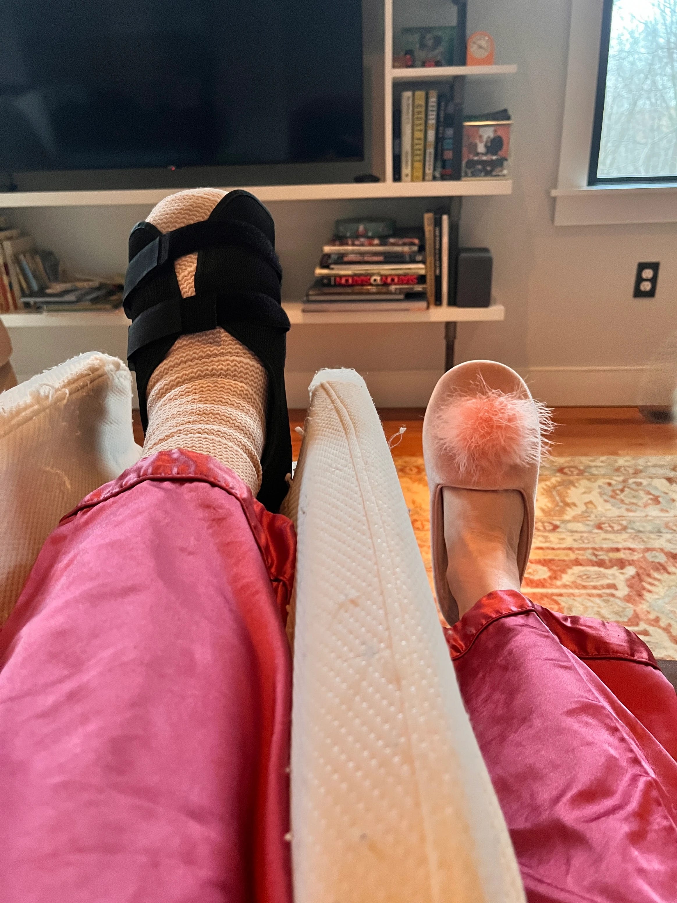 It’s kind of nice, really, having this excuse not to do anything other than basic care and feeding of myself. Huckleberry is here with me, being very cuddly, as I am his only snuggle option. I did a last pass at my upcoming book and sent it in eight days ahead of schedule; watched an entire season of Glow Up, the makeup artist competition; read two books; and ate those cheesecake bars (and a salad). I went to a meeting at the library, because I can drive, and to the doctor’s office for a follow-up. I crutch-pushed a basket of laundry into the mudroom and started that. Really quite bad-ass, don’t you think?